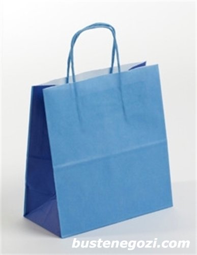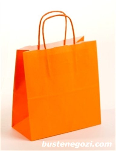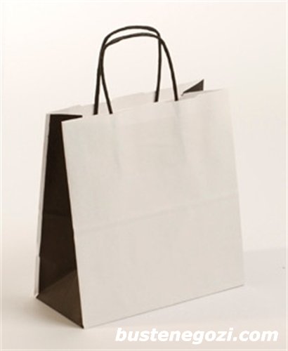 Busta in carta colorata con soffietti a contrasto, maniglia ritorta in tinta e fondo quadro